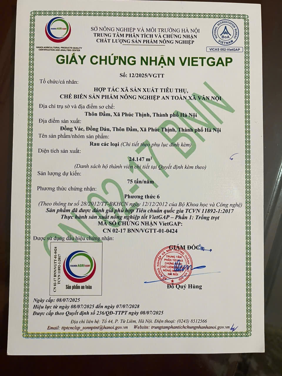 Thông tin sản phẩm Su su của HTX Vân Nội
