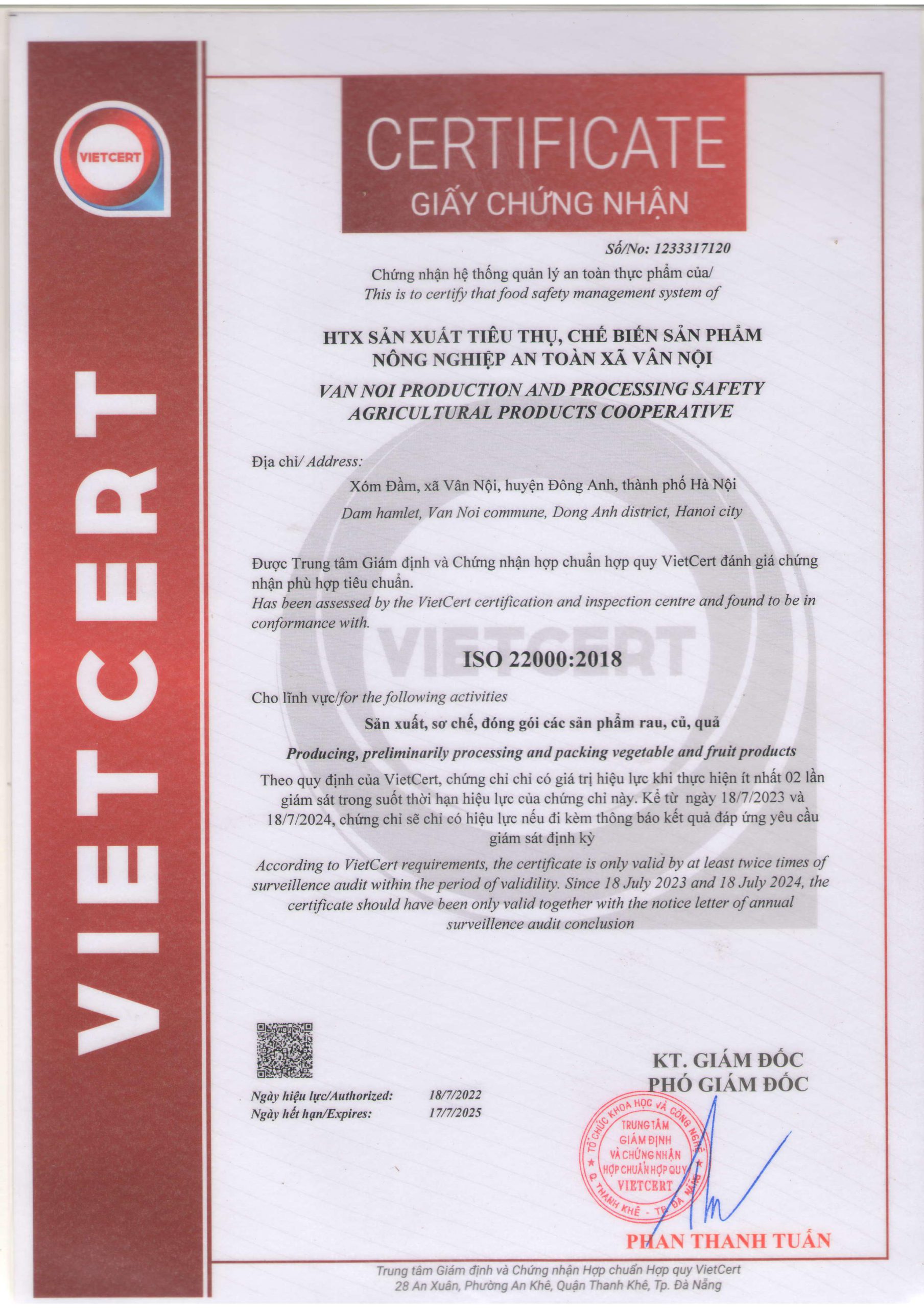 Thông tin sản phẩm xà lách của HTX Vân Nội